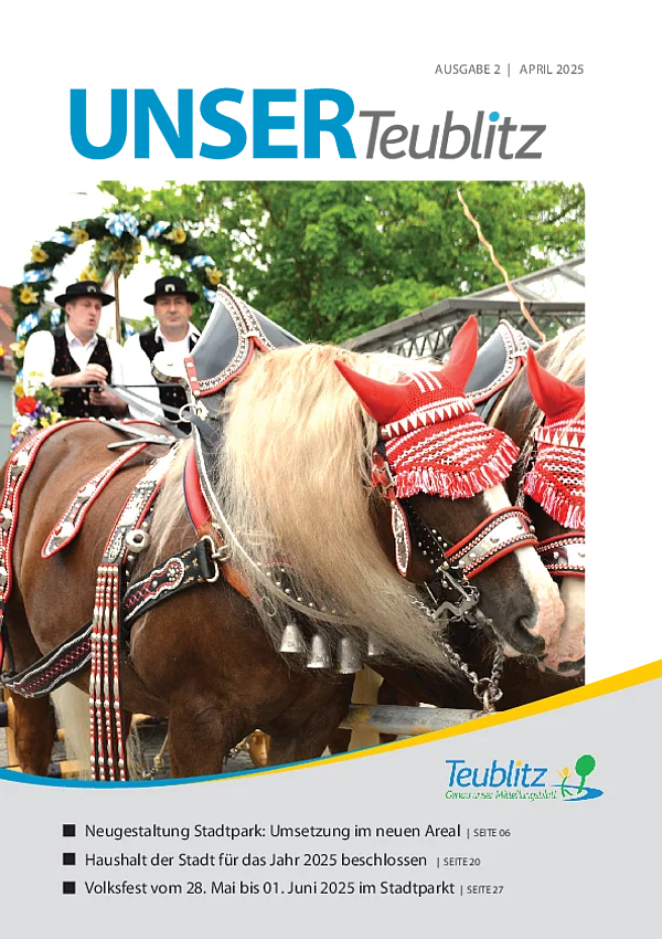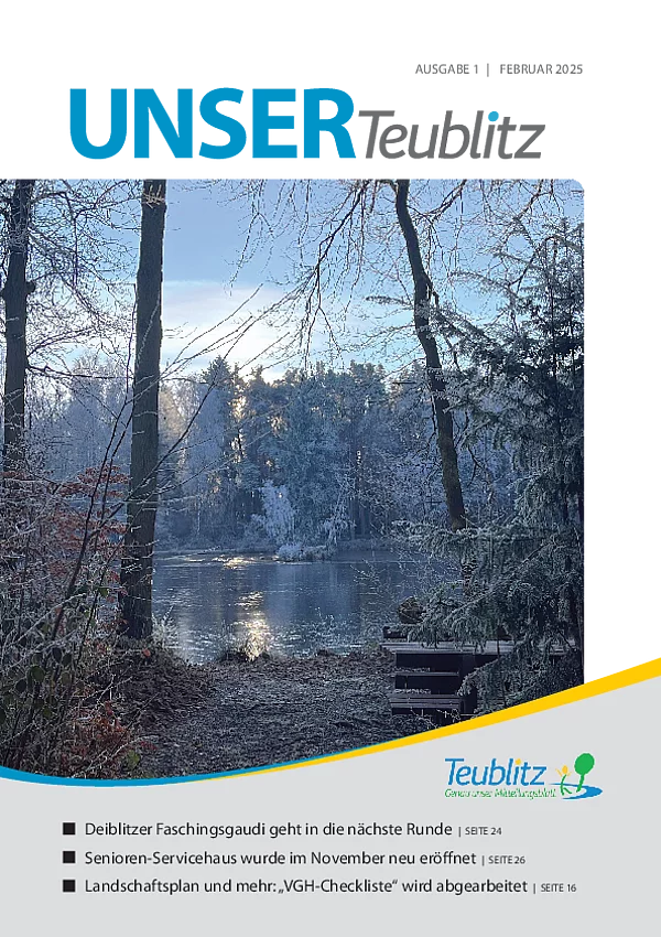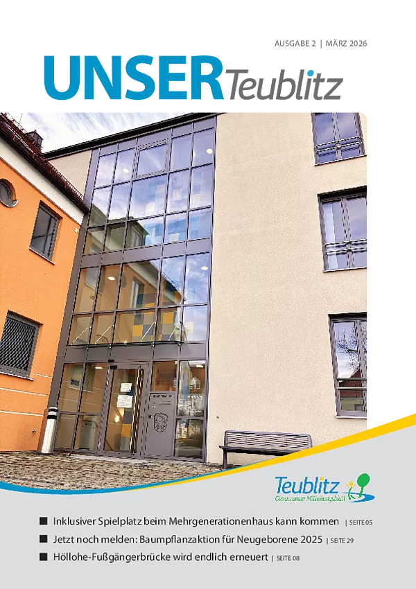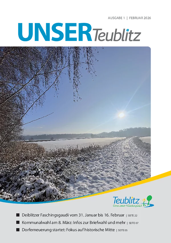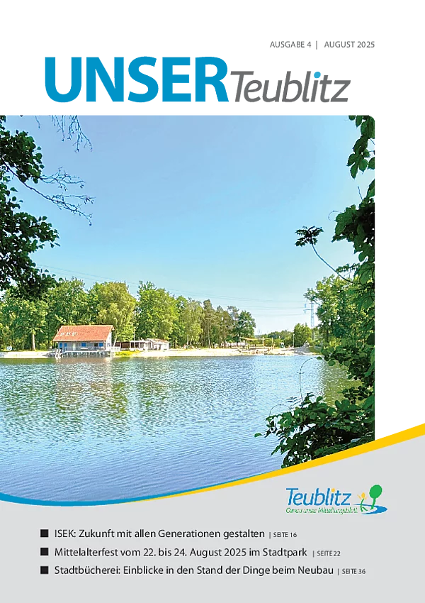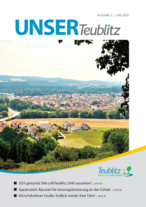 Mit dem Mitteilungsblatt "UNSER Teublitz" informieren wir über aktuelle Ereignisse des Stadtlebens sowie über politische Entscheidungen durch den Teublitzer Stadtrat.