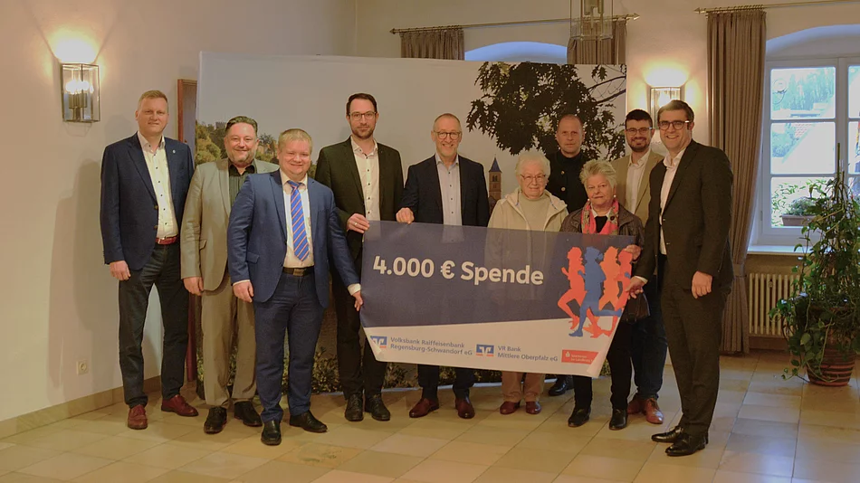 Die Sparkasse im Landkreis Schwandorf, die Volksbank-Raiffeisenbank Regensburg-Schwandorf und die VR Bank Mittlere Oberpfalz spendeten dieses Jahr pro Teilnehmenden, der die Ziellinie überquerte, 2,50 Euro – das heißt 1,00 EURO mehr pro Teilnehmenden, als in der Vergangenheit. Somit verzeichnete der 13. Städtedreieckslauf nicht nur eine neue Rekordsumme in Höhe von 3.863 Euro, sondern auch eine nennenswerte Beteiligung von insgesamt 515 Teilnehmenden. Der gespendete Betrag wurde von den Banken aufgerundet und es konnte nun zum ersten Mal die stolze Summe von 4.000 Euro überreicht werden.