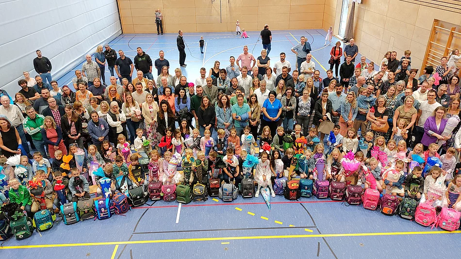 An der Teublitzer Telemann-Grundschule hatten 72 Jungs und Mädchen Mitte September 2024 ihren ersten Schultag. Schulleiterin Sabine Kunz empfing mit ihrem Team die Kinder und deren Eltern in der Dreifachsporthalle. Begrüßt wurden sie dabei von einem Lied, vorgetragen von den Kindern der Klasse 4c.