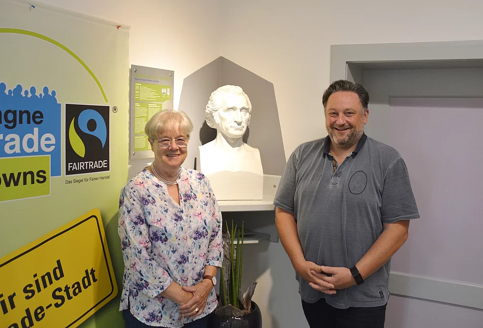 Ute von Wehren, Ur-Ur-Enkelin des bayerischen Außenministers Friedrich August Freiherr von Gise, stattete Ersten Bürgermeister Thomas Beer im Teublitzer Rathaus einen Besuch ab.