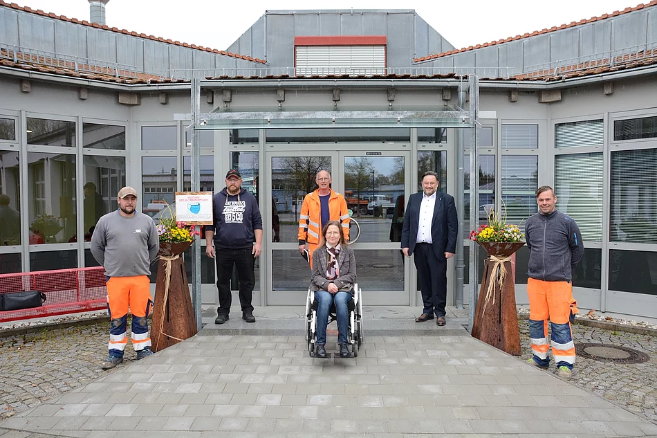 Mit den abgeschlossenen Pflasterarbeiten am Feuerwehrgerätehaus in Teublitz ist das Gebäude nun barrierefrei zugänglich. Von der neu erlangten Barrierefreiheit der Freiwilligen Feuerwehr in Teublitz überzeugten sich Erster Bürgermeister Thomas Beer und die Beauftragte für die Belange von Menschen mit Behinderung im Städtedreieck, Bianca Härtl. Begleitet wurden sie dabei von Mitarbeitern des Bauhofs und Marco Feicht, Erster Kommandant der Freiwilligen Feuerwehr Teublitz. „Leider haben wir in Teublitz was Barrierefreiheit betrifft noch immer Entwicklungspotential“, stellte Erster Bürgermeister Thomas Beer fest. „Unser klares Ziel ist es aber, diese infrastrukturellen Rückstände nach und nach zu reduzieren. Mit dem barrierefreien Zugang zu einem weiteren öffentlichen Gebäude in Teublitz, ist wieder ein wichtiger Schritt in die richtige Richtung getan worden.“ Im Frühjahr hatte der städtische Bauhof die Pflasterarbeiten begonnen und inzwischen abschließen können. Dadurch ist es nun möglich, barrierefrei Zugang zum Gebäude zu erlangen. „Wir als Freiwillige Feuerwehr Teublitz haben uns natürlich sehr gefreut, dass unser Gerätehaus nun um einen barrierefreien Zugang bereichert wurde“, sagte Feicht. „Durch einen Schicksalsschlag innerhalb unserer Kameraden wurde uns allen noch mehr bewusst, wie wichtig Barrierefreiheit für Menschen mit einem Handicap ist.“ Mit der Fertigstellung der Pflasterarbeiten ist das Ziel einer barrierefreien Stadt, in der auch Menschen mit Beeinträchtigungen die Umwelt ohne zusätzliche Hilfen nutzen und wahrnehmen können, aber noch nicht erreicht.