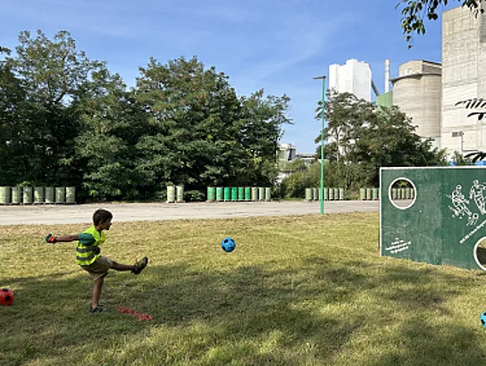 Am Werksgelände angekommen, konnten die jungen Besucher ihrer Kreativität freien Lauf lassen. Mit Unterstützung von der Auszubildenden der „Heidelberg Materials“ bemalten sie Betonfiguren und gestalteten diese individuell. Zudem konnten sie ihre sportlichen Fähigkeiten beim Torwandschießen unter Beweis stellen.