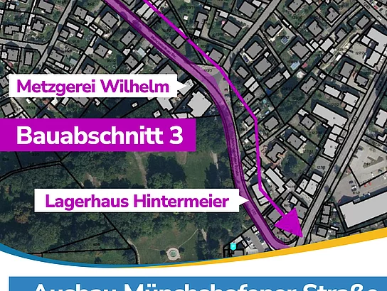 Beim BA 3, im Bereich der Einmündung Regensburger Straße (Höhe Bäckerei Brunner) bis hin zur Einmündung in die Parkstraße (Kurve in Richtung Sportplatz), werden voraussichtlich am 16. und 17. Juli 2024 die beiden Asphaltschichten eingebaut. Gehwege und Parkflächen werden daran anschließend nach und nach fertiggestellt. Direkt betroffene Anwohner und Anliegerinnen werden gesondert per Info-Brief informiert.