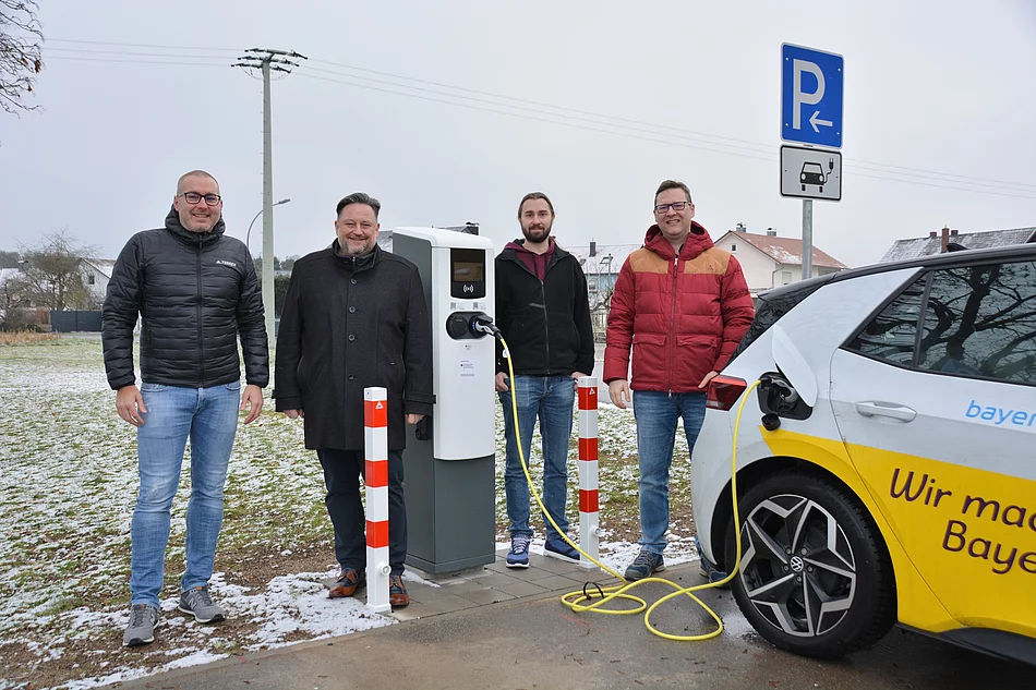 Damit wurde das Angebot an öffentlich zugänglichen Ladestationen für Elektro-Autos auf sieben Punkte ausgeweitet. Zu den insgesamt sieben Ladestationen zählen auch die bisher vorhandenen Stationen an den öffentlichen Parkplätzen hinter dem Rathaus und beim Friedhof in Teublitz. „Mit diesem flächendeckenden Angebot an öffentlichen Ladestationen sind wir als Stadt Teublitz in unserer Region ganz vorne mit dabei“, zeigte sich Thomas Beer überzeugt. Als Betreiber aller e-Auto-Ladestationen fungiert auch weiterhin Bayernwerk e-mobil. Wolfgang Dumm, Kommunalbetreuer der Bayernwerk Netz GmbH, ging mit Bürgermeister Thomas Beer und IT-Administrator Thomas Grundstein „auf Tour durch Teublitz“. Dabei machten sie sich ein Bild von den Ladestationen an den fünf neuen Standorten.