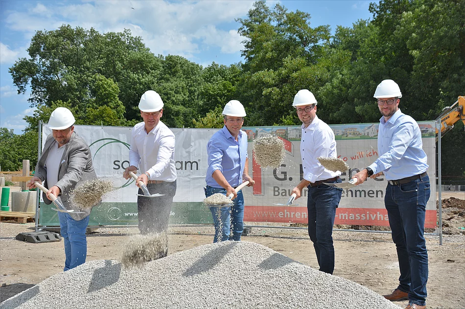 „Mit diesem Projekt bieten wir der älteren Generation auch im hohen Alter die Möglichkeit, bei aktuell begrenzter Anzahl an Pflegeplätzen, ihre Heimatstadt nicht verlassen zu müssen“, so Bürgermeister Thomas Beer voller Stolz über ein Projekt, das nun richtig ins Rollen kommt. An seiner Seite in der Dr.-Fr.-Flick-Straße beim Spatenstich, auf dem Gelände des ehemaligen Schulsportplatzes, waren Bauunternehmer Georg Ehrenreich, der Investor und Bauherr Dr. Thomas Rosenkranz und vom Sozialteam Regensburg der Geschäftsführer Dr. Christian Weiß sowie Prokurist Andreas Neugirg.