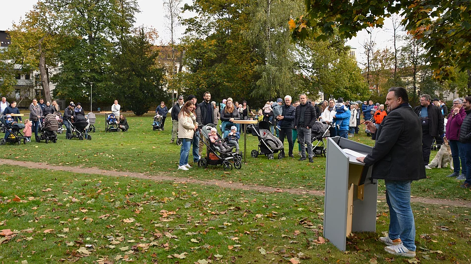 Erstmals in der Teublitzer Geschichte fand eine „Baumpflanzaktion für Neugeborene“ der Jahrgänge 2021 und 2022 im Stadtpark statt. Dazu konnte Bürgermeister Thomas Beer zusammen mit den Stadträten über 190 angemeldete Eltern mit ihren Kindern willkommen heißen.