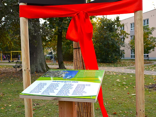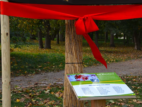 Für den Jahrgang 2021 wurde ein Blutahorn ausgewählt und gepflanzt, der fortan für die 47 geborenen Sprösslingen und Sternenkinder stehen wird. Damit die Kinder auch in künftigen Jahren immer wieder ihren „eigenen“ Jahrgangsbaum finden können, wurde eine Plakette mit allen Namen darauf angebracht, die der Bürgermeister enthüllte. Der Jahrgangsbaum 2022 ist eine „Blumenesche“. Dieser Baum wird die nächsten Jahrzehnte für die 72 geborenen Sprösslinge und Sternenkinder stehen. Auch hier enthüllte Bürgermeister Thomas Beer die angebrachte Plakette mit den Namen der Neugeborenen des Jahrgang 2022.
