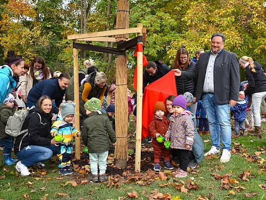 Baumpflanzaktion: Große Freude bei den Kleinsten