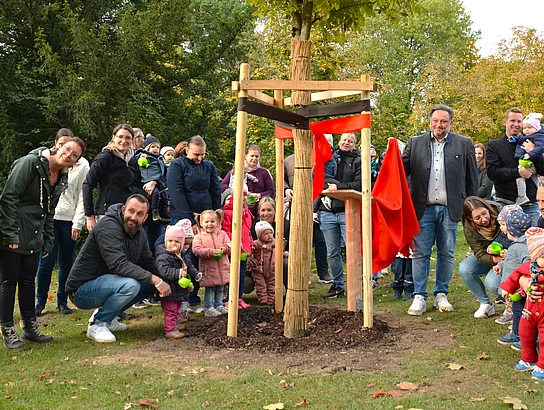 „Für unsere Stadt ist eine Geburt stets ein freudiges Ereignis. Eltern mit ihren Kindern und des Kindes Kindern - Generationen, die fest verwurzelt sind in ihrer Heimatstadt Teublitz. Deshalb lasst uns heute und hier gemeinsam Wurzeln schlagen“, sagte Bürgermeister Beer in seiner Ansprache.