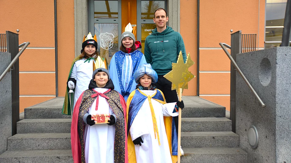 Zu Beginn des neuen Jahres starteten die Sternsinger der Pfarrei Herz-Jesu Teublitz ihre diesjährige Sternsinger-Aktion. Mehrere Gruppen waren im Stadtgebiet unterwegs. Eine davon machte zu Beginn Halt im Teublitzer Rathaus.