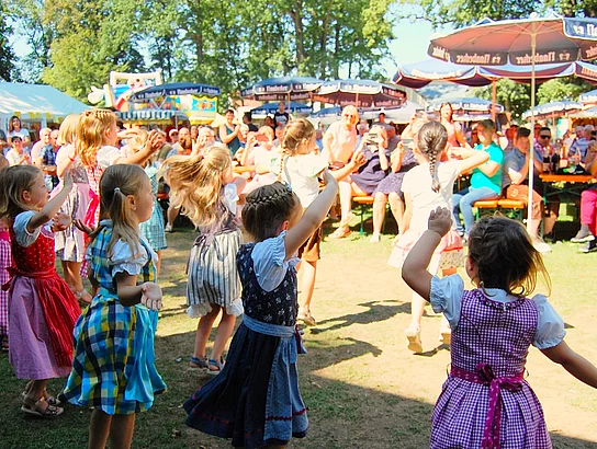 Das Kinderland bietet ein vielfältiges Programm: Bastelstationen, Kinderschminken, das Spielmobil zum Springen, Jonglieren und Balancieren sowie Tanz- und Kunstauftritte sorgen für Spaß und Kreativität. Ein Highlight für die Kleinsten ist die seit Generationen beliebte Strohhüpfburg.