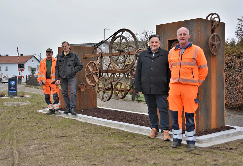 Bürgermeister Thomas Beer dankte dem Künstler Florian Zeitler für sein Kunstwerk und betonte, dass neben einer Aufwertung des Ortsbildes auch ein Denkmal für die Geschichte der Stadt und der Arbeits- und Lebensgeschichte vieler Teublitzer*innen geschaffen wurde. Sein Dank galt aber auch dem Bauhofleiter Peter Roidl und den drei mitwirkenden Bauhof-Mitarbeitern Günther Bayerl, Ludwig Ullmann und Andreas Kobler für die gelungene Erstellung der Fundamente und Eingrenzungen der gesamten Anlage.