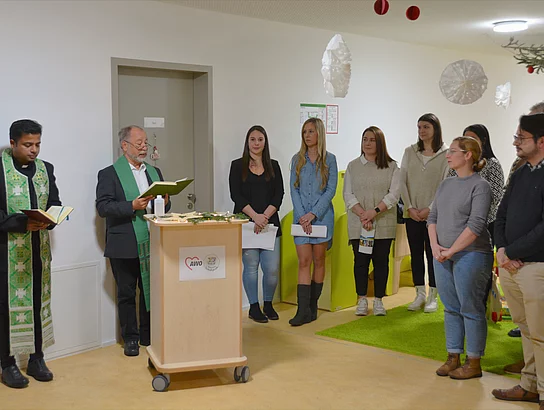 Grußworte überbrachten der AWO-Bezirksvorsitzende Bernhard Feuerecker und AWO-Geschäftsführer für den Bezirksverband Niederbayern-Oberpfalz Alexander Trapp, die beide die Kompromissbereitschaft und das Verständnis bei der Bauausführung lobten. Dieses neue Kinderhaus ist „ein Baustein für eine gute Zukunft für die Kinder“, betonten beide. Sie überreichten einen Scheck in Höhe von 1.500 Euro an die Kinderhausleiterin Sandra Karl, um besondere Wünsche der Kinder zu erfüllen. Architekt Fabian Biersack und Investor Georg Ehrenreich warteten ebenfalls mit einem Geschenk an das Kindergartenpersonal auf. Auch die Elternbeiratsvorsitzende Karin Frey überraschte mit einem Geschenk in Form einer „Schatzkiste“, die im Eingangsbereich des Kinderhauses ihren Platz finden soll. Die Segnung des Kinderhauses „Schatzkiste“ erfolgte durch Pater Sijo von der Pfarrei Katzdorf sowie durch den evangelischen Geistlichen Winfried Stahl aus Maxhütte-Haidhof.