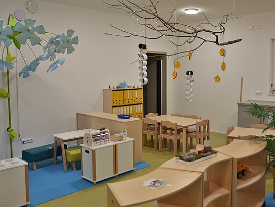 Vom Spatenstich im Oktober 2021 bis zum Einzug im September diesen Jahres, hatte der Teublitzer Investor und zuverlässige Partner der Stadt, Bauunternehmer Georg Ehrenreich, dieses moderne und den heutigen Ansprüchen entsprechende Gebäude errichtet. Dabei wurde mit Fragen des Flächensparens, mit der Nutzung großer Dachflächen zur Stromerzeugung, mit einer zentralen Lüftungsanlage, einer hohen Energieeffizienz und dem Einbau eines Fahrstuhls auf die Herausforderungen der heutigen Zeit reagiert. In sehr guter Zusammenarbeit mit dem Kinderhaus-Team um Leiterin Sandra Karl konnte neben der hervorragenden technischen Ausstattung auch eine optimale Möbelausstattung für die Kinder geschaffen werden.