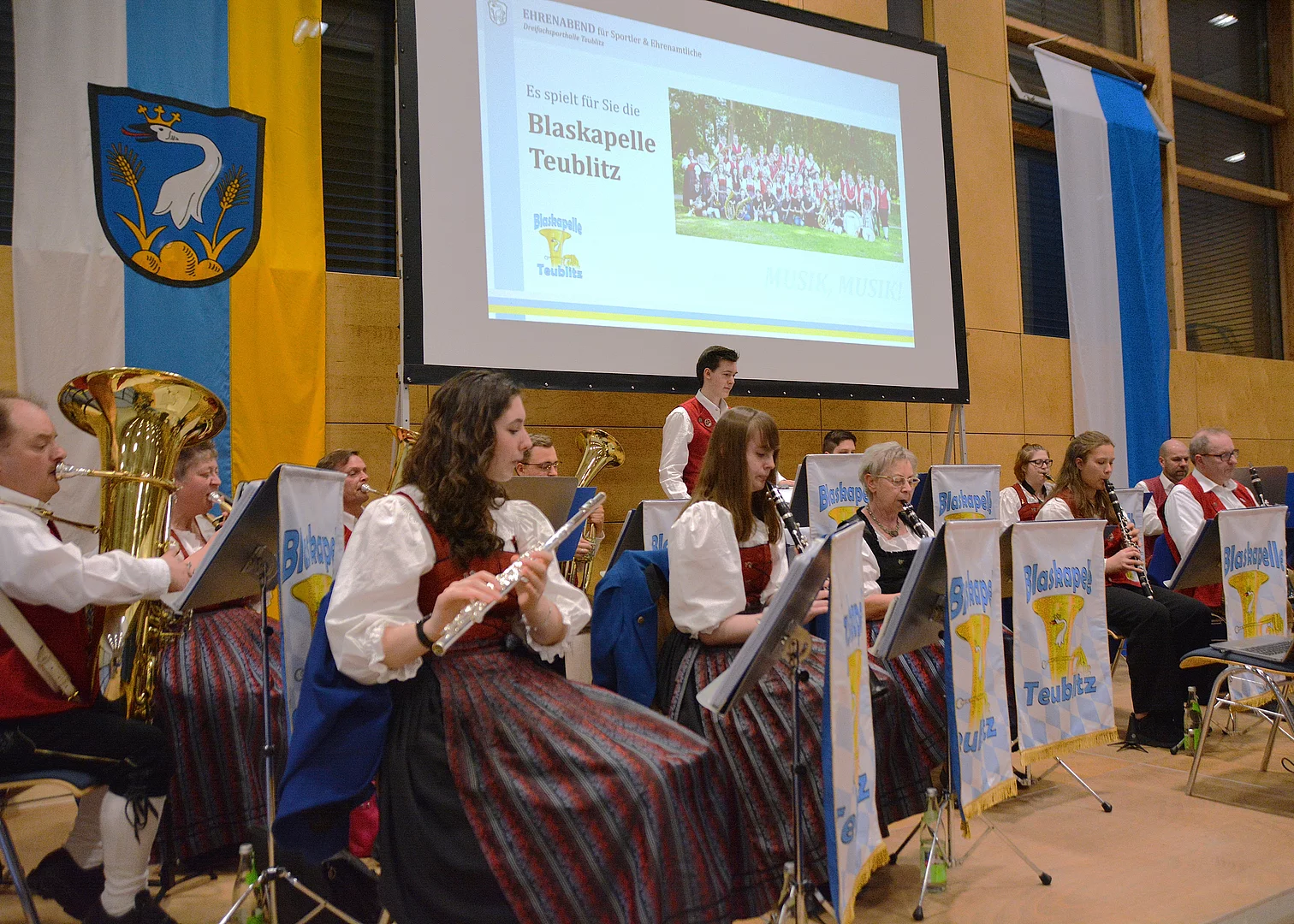 Anschließend erfolgten die Auszeichnungen der sportlichen Erfolge und der Ehrenamtlichen der Teublitzer Vereine. Zum Abschluss des Ehrenabends sang man unter den Klängen der Blaskapelle gemeinsam die „Bayernhymne“.