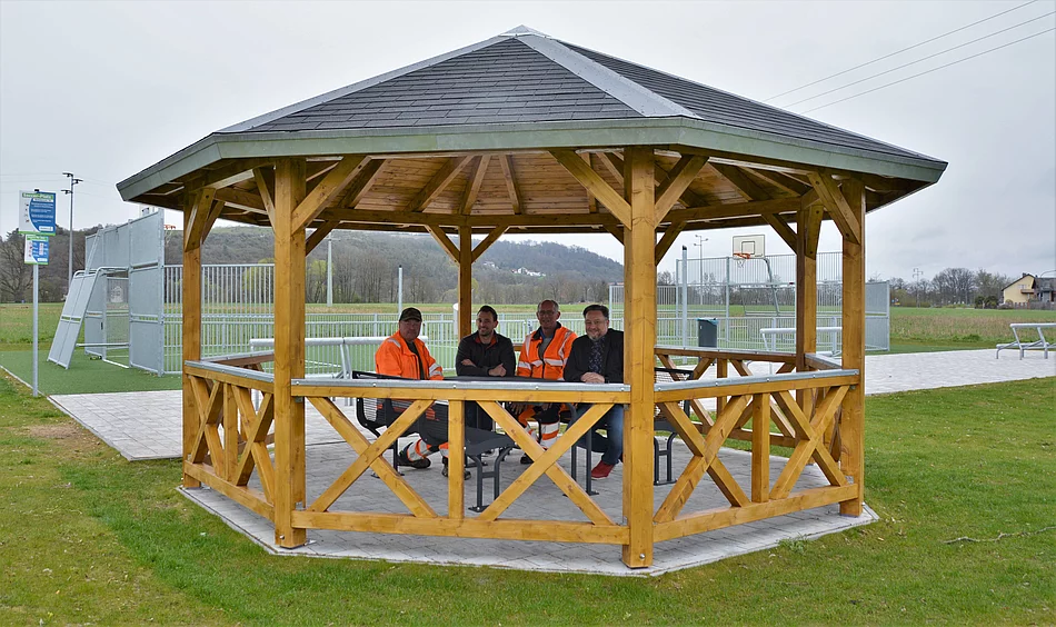 Bereits damals stand aber fest, dass allein mit den Sportanlagen die Aufwertung des Außengeländes noch nicht abgeschlossen war. Entsprechend wurde Anfang 2023 ein Pavillon der Marke „Finn Art Blockhaus“ errichtet und die Fundamente für Kräuterschnecken gelegt. Die Arbeiten wurden komplett vom städtischen Bauhof erledigt. Für die Fertigstellung der gesamten Außenanlagen wurden insgesamt rund 80.000 Euro investiert.