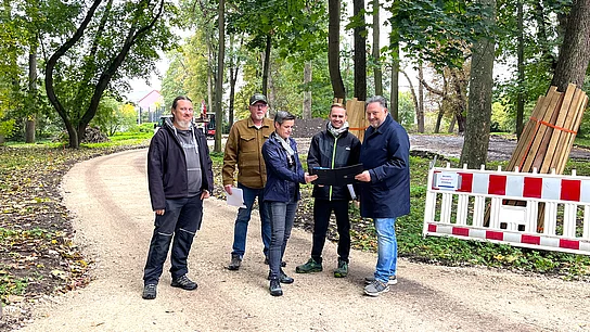 Vor Ort zeigte sich, dass die Arbeiten planmäßig vorangehen. Die Landschaftsbaufirma Schmidt aus Schirmitz gestaltet derzeit die neuen Wege und Pflanzflächen, geplant und fachlich begleitet vom Landschaftsplanungsbüro Helmut Wiegel aus Bamberg. Rund 270.000 Euro investiert die Stadt in diesen Teilabschnitt der Neugestaltung.