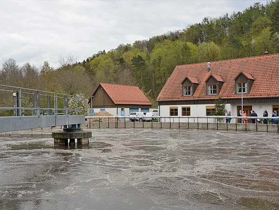 Während das im Anschluss an die Reinigung im Nachklärbecken saubere Wasser zurück in die Naab geleitet wird, wird der Klärschlamm in einem hohen Becken gesammelt und an den Zweckverband zur thermischen Klärschlammverwertung nach Schwandorf abgegeben.
