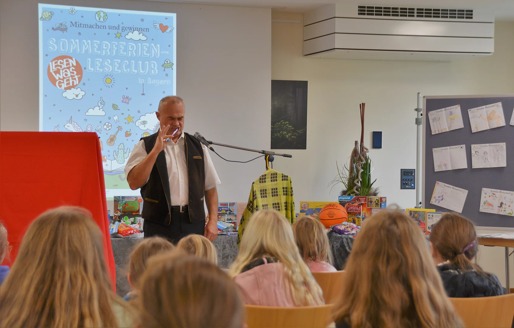 Zur Preisverleihung hatte sich neben Bürgermeister Thomas Beer, Kämmerer Georg Beer sowie Erika Reindl und Tanja Emmert von der Stadtbücherei auch ein besonderer Gast in die Reihen gemischt. Mit spannenden Zaubertricks sorgte Zauberer Karli für Begeisterung bei den jungen Gästen, bevor es an die begehrten Preise ging.