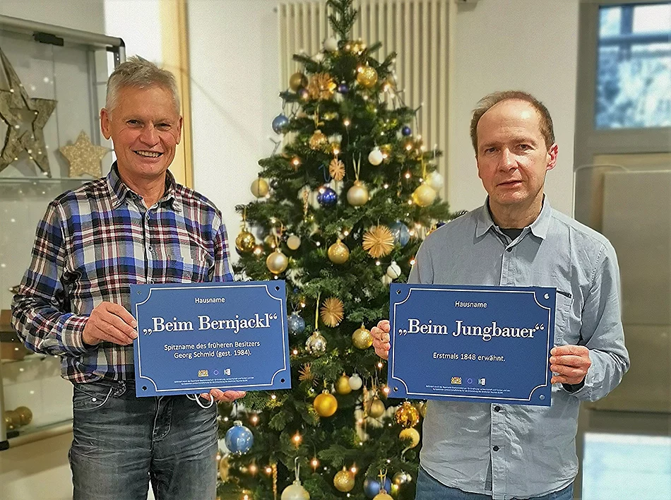 Im Laufe des Jahres führte das Landratsamt Schwandorf eine Aktion zum Thema „Hausnamen“ durch. Die druckfrischen Schilder wurden nun, Mitte Dezember, auch in Teublitz an die Hausbesitzer*innen übergeben.