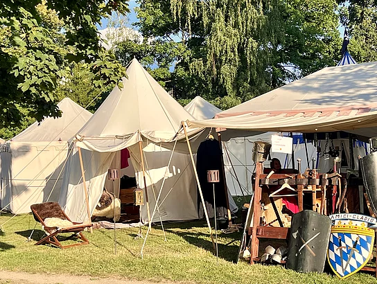Auch abseits der Arena gab es für Jedermann viel zu entdecken. Von edlem Schmuck, feinen Düften und handwerklichen Kostbarkeiten bis hin zu kulinarischen Genüssen und süffigem Bier der Brauerei Jacob aus Bodenwöhr war für alle Geschmäcker etwas dabei. Kinder konnten sich im Kasperltheater, beim Märchenerzähler, auf dem Holzriesenrad, beim Kamelreiten oder bei der beliebten Kinder-Ritterschlacht mit Schaumstoffschwertern austoben.
