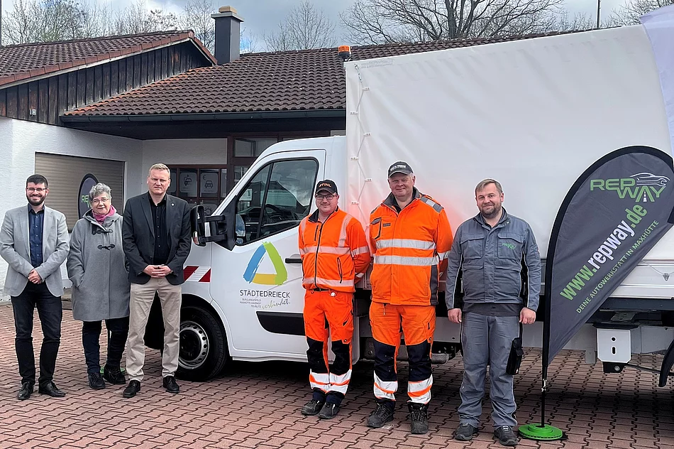 Der Zweckverband Städtedreieck hat Zuwachs bekommen. Um genau zu sein ein praktisches Fahrzeug für die Mitarbeiter. Geschäftsführer der Repway GmbH, Herr Markus Humml (nicht im Bild), übergab den Fahrzeugschlüssel an den stellvertretenden Verbandsvorsitzen-den des Zweckverbandes und 1. Bürgermeister der Stadt Maxhütte-Haidhof, Herrn Rudolf Seidl.