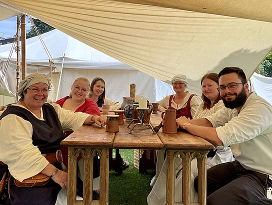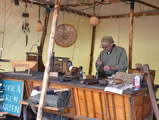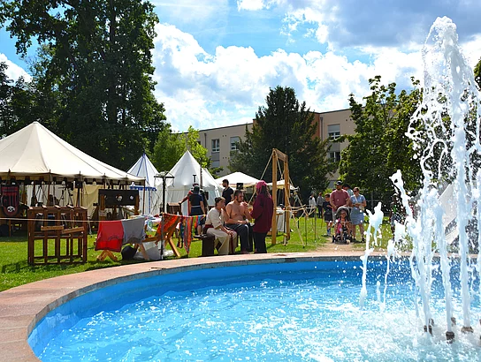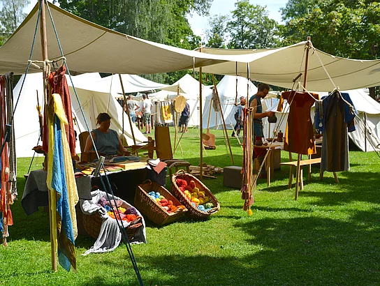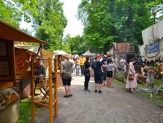 Für die Besucher eröffnete sich an den drei Festtagen im Stadtpark die Möglichkeit, alles anzufassen, auszuprobieren, anzuschauen und mit dem einen oder anderen „Markgrafen“ einen Humpen Bier zu trinken. Bei einem Rundgang durch den Mittelaltermarkt gab es zudem viel zu sehen: zahlreiche Händler boten Geschmeide, Gold, Silber, Armreifen, Hüte, aber auch „süßes Zeug“ feil. Dazu kamen Töpfer, Silberschmiede, Gaukler und Bettler.