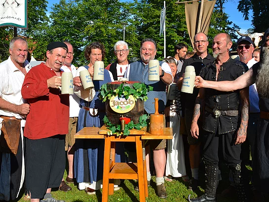 Ideales Sommerwetter herrschte zum Auftakt am Freitagabend beim farbenprächtigen Festzug durch alle Lagergruppen im Stadtpark. Am Hauptplatz nahmen alle mittelalterlichen Gruppen Aufstellung, die von Marktvogt "Henker Hubertus" alias Hubert Haubner begrüßt wurden. Auch Bürgermeister Thomas Beer hieß die Gäste willkommen und wünschte den Besuchern unbeschwerte Stunden in gemütlicher Atmosphäre. Anschließend erfolgte durch Beer der obligatorische Bieranstich mit Unterstützung durch Jacobs-Braumeister Martin Spießl. Zweiter Bürgermeister Robert Wutz trug anschließend die Marktregularien vor.