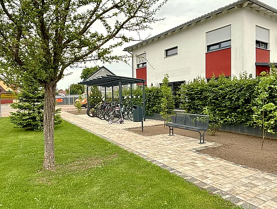 Der neue Fahrradunterstand stammt von der Firma Ziegler Metall, einem bewährten Hersteller für Stadtmobiliar. Neben der Lieferung und Montage wurden umfangreiche Begleitmaßnahmen durchgeführt: Der städtische Bauhof übernahm Pflasterarbeiten, legte einen neuen Rasen an und gestaltete die Anpflanzungen rund um den Abstellbereich neu. Ebenfalls neu sind eine beständige Sitzmöglichkeit und ein Abfallbehältnis.