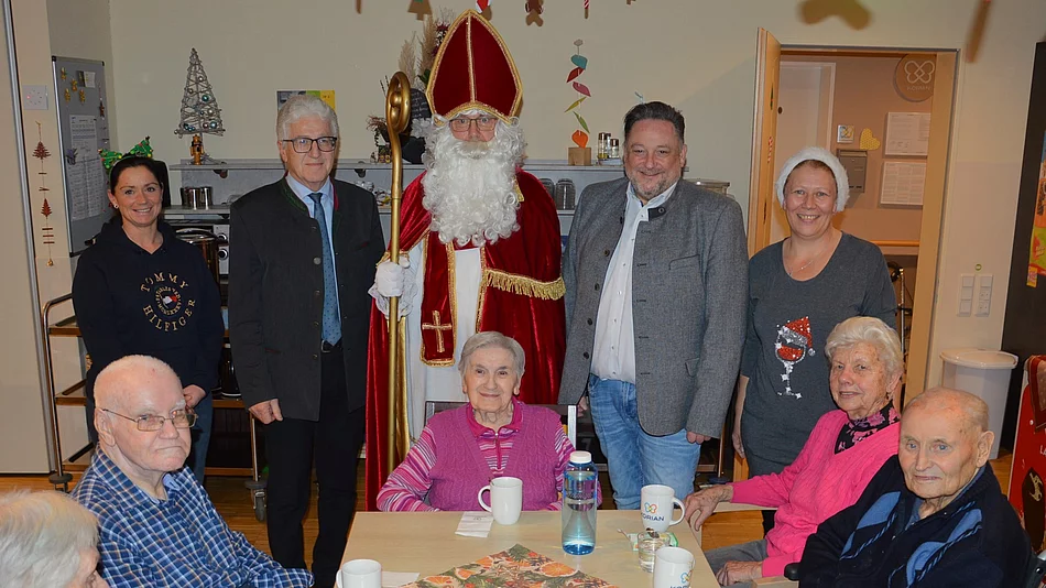 Bei der Weihnachtsfeier für die Bewohnerinnen und Bewohner des Seniorenheims „Haus Phönix“ am Teublitzer Stadtpark, war der Heilige Nikolaus zu Besuch. Zugleich kamen auch Bürgermeister Thomas Beer und Seniorenbeiratssprecher Robert Wutz vorbei. Im Gepäck hatten sie Weihnachtsgeschenke.