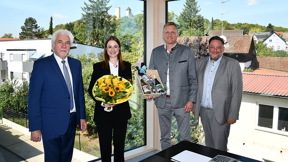 Zweiter Bürgermeister Josef Gruber für Burglengenfeld, Bürgermeister Thomas Beer für Teublitz und Bürgermeister Rudolf Seidl aus Maxhütte-Haidhof besuchten die neue Notarin mit einem Präsent, hießen sie willkommen und wünschten ihr alles Gute sowie einen guten Start im Städtedreieck: „Wir sind überzeugt, dass die gute Partnerschaft auch unter neuer Führung fortgesetzt wird und die Bürgerinnen und Bürger so wie bisher bestens beraten werden.“