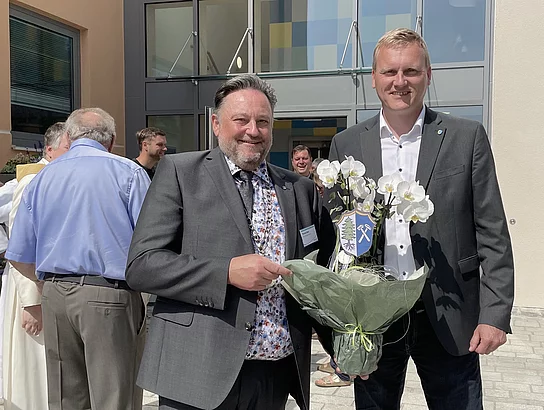 Stellvertretender Landrat Richard Tischler überbrachte die Grüße des Landkreises und auch des anwesenden Maxhütter Bürgermeisters Rudolf Seidl. Die Stadt Teublitz habe ein attraktives Gebäude geschaffen für die Beschäftigten und auch für die Bürger*innen.