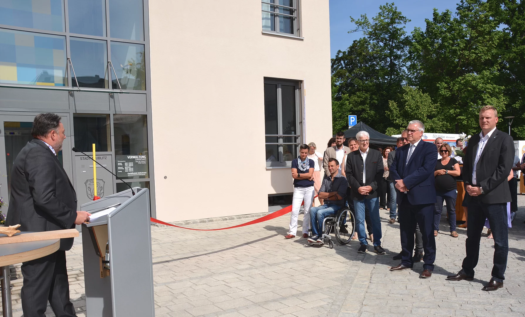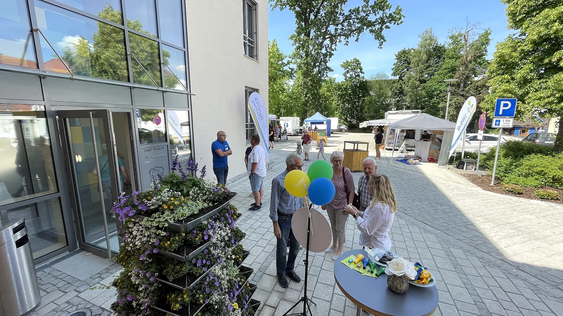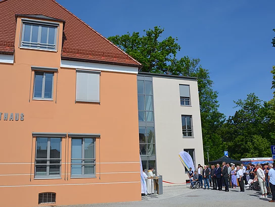 „Wow! Ein Rathaus, das unserer Stadt Teublitz in allen Belangen gerecht wird!“ Mit diesen überschwänglichen Worten übergab am 2. Juni 2023 Bürgermeister Thomas Beer bei einem Festakt vor vielen Ehrengästen den neuen und mit rund 1,5 Millionen Euro erstellten Rathaus-Erweiterungsbau. Am Nachmittag waren Interessierte zum „Tag der offenen Rathaustür“ eingeladen. Am Rathausparkplatz gab es viele Aktionen mit Kinderunterhaltung vom „Partykist’l“, Info-Stand von „Bürger retten Leben“, einem Glücksrad und kulinarischen Leckereien.