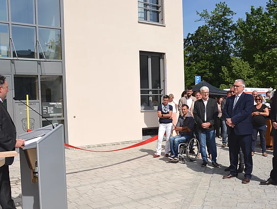 Bürgermeister Thomas Beer freute sich über den besonderen Tag, den er als Stadtoberhaupt erleben darf. Nach einer eineinhalbjährigen Bauzeit konnte man nun die offizielle Einweihung des Gebäudes im Herzen der Stadt feiern. „Die Rathaus-Erweiterung war unbedingt nötig und auf den Weg dorthin ist man jetzt am Ziel angekommen,“ stellte Beer fest. „Heute freuen wir uns über ein modernes öffentliches Gebäude, mit dem wir den Herausforderungen der Zukunft getrost entgegenblicken können.“