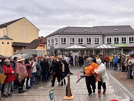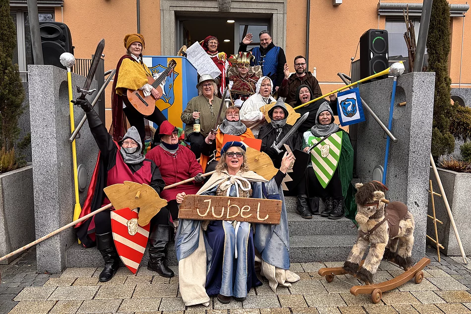 Da kein eindeutiger Sieger ermittelt werden konnte, eroberte schließlich der Hofnarr den Bürgermeisterthron. Damit übernahmen die Faschingsfreunde symbolisch bis Aschermittwoch die Regentschaft über das Rathaus. Begleitet wurde das Spiel vom Lied „Ja so warn’s die alten Rittersleit“, bei dem Bürgermeister Thomas Beer, Pfarrer Lucas Lobmeier und Mitglieder des Stadtrats augenzwinkernd einbezogen wurden.