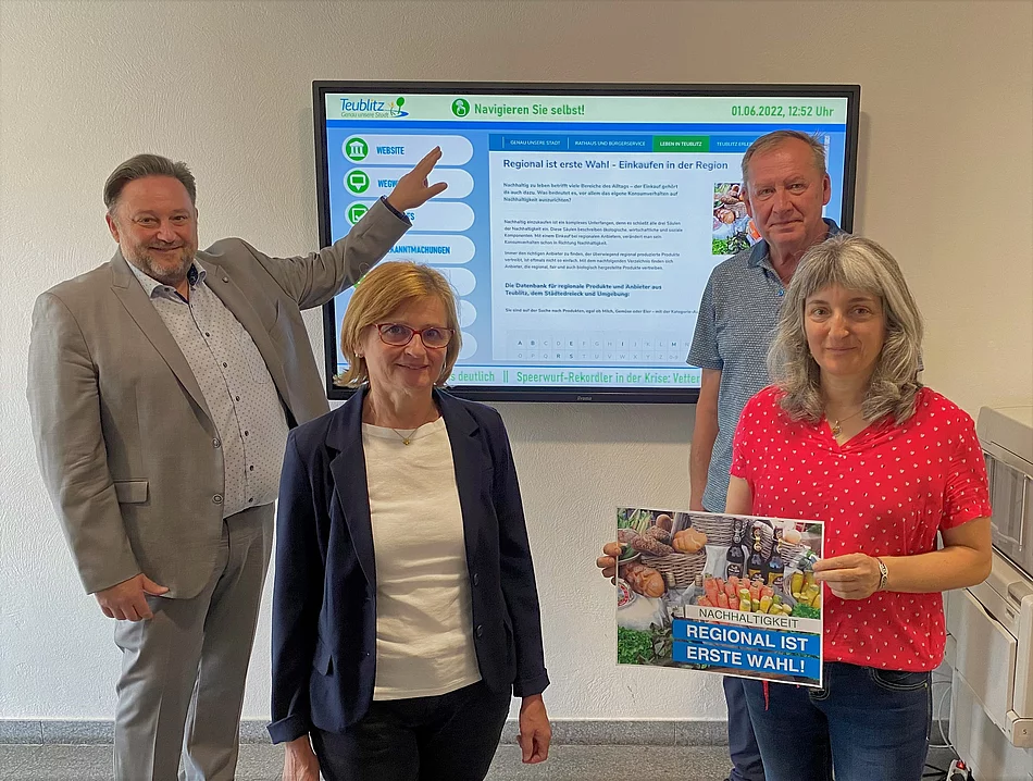 Wer bewusst einkaufen möchte, steht oft vor der Herausforderung, sich darüber zu informieren, welche Anbieter*innen regional produzierte Produkte verkaufen. Damit das einfacher wird, hat sich eine gemeinsame Initiative aus dem Eine-Welt-Laden, der Kolpingfamilie und dem Teublitzer Frauenbund mit Unterstützung der Stadt Teublitz zum Ziel gesetzt, eine Anlaufstelle für Verbraucher*innen zu schaffen. Dort sind regionale Anbieter*innen aus Teublitz, dem Städtedreieck und Umgebung, die beispielsweise ihre Produkte überwiegend regional produzieren und auch regionale Produkte vertreiben, zu finden.