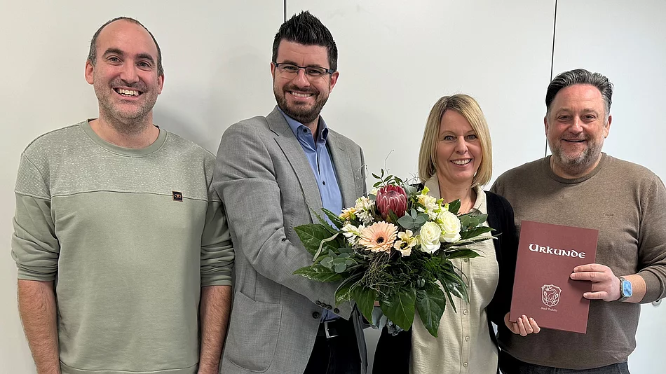 Im Januar 2025 feierte Sabine Haase, Mitarbeiterin im Zweckverband Städtedreieck, ihr 25-jähriges Dienstjubiläum. In der Geschäftsstelle ist sie nicht mehr wegzudenken. Auch künftig wird sie mit Motivation und frischen Ideen im Einsatz für die Bürgerinnen und Bürger sein.
