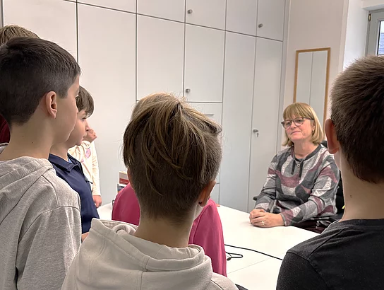 Von Etage zu Etage lernten die Kinder verschiedene Fachbereiche kennen: Zentrale Dienste mit Bürgerbüro und Kultur, Finanzen und Stadtkasse sowie Planen und Bauen. Die letzte Station war das Bürgermeisterzimmer, wo es traditionell besonders viele Fragen an Bürgermeister Thomas Beer gab – und auch das Probesitzen auf dem Bürgermeisterstuhl durfte selbstverständlich nicht fehlen.