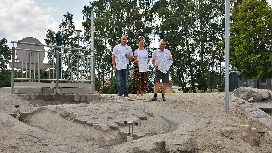 „Ich bin überzeugt davon, dass wir mit dem Wasserspielplatz unseren kleinsten Badegästen eine riesige Freude bereiten“, so die stellvertretende Bürgermeisterin Saskia Wilhelm-Dorn. Der Wasserspielplatz wurde basierend auf einem Vorschlag des Teublitzer Bürgers Andreas Pöllmann im Bürgerhaushalt errichtet und zur Badesaison 2023 in Betrieb genommen. „Eine offizielle Einweihung dieses neuen Highlights an der Teublitzer Badestelle bei unserem Sommerfest kam da wie gelegen“, ergänzen Ronny Simon, Vorstand der Wasserwacht Teublitz, und Technischer Leiter Markus Frey im Gleichlaut.