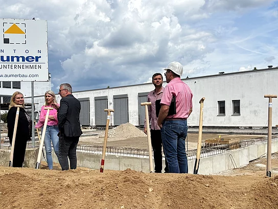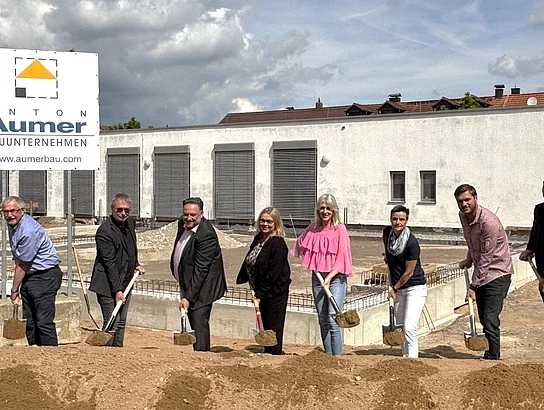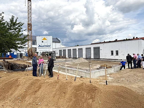 Zum Spatenstich begrüßte Erster Bürgermeister Thomas Beer zahlreiche Gäste, darunter Schulleiterin Sabine Kunz, Konrektorin Stefanie Friedl sowie Vertreterinnen und Vertreter der beteiligten Planungs- und Baufirmen. Zu diesen zählen das Architekturbüro Popp, das Ingenieurbüro Brundobler, das Elektroplanungsbüro Klotz, die Aumer Bau GmbH sowie weitere Fachunternehmen.