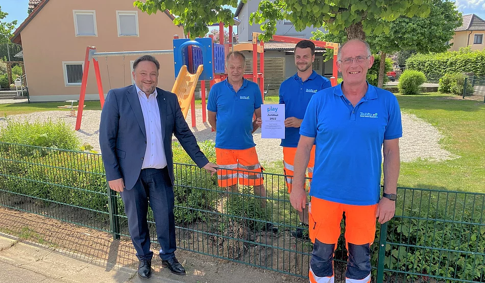 Den Lohn ihrer guten Arbeit konnte sich der Trupp jüngst durch ein Zertifikat der Firma „playsafe“ bescheinigen lassen. Die Firma aus Regenstauf bietet Betreibern von öffentlichen Spielplätzen die Möglichkeit, durch qualifizierte Spielplatzführer regelmäßige Kontrollen durchführen zu lassen.