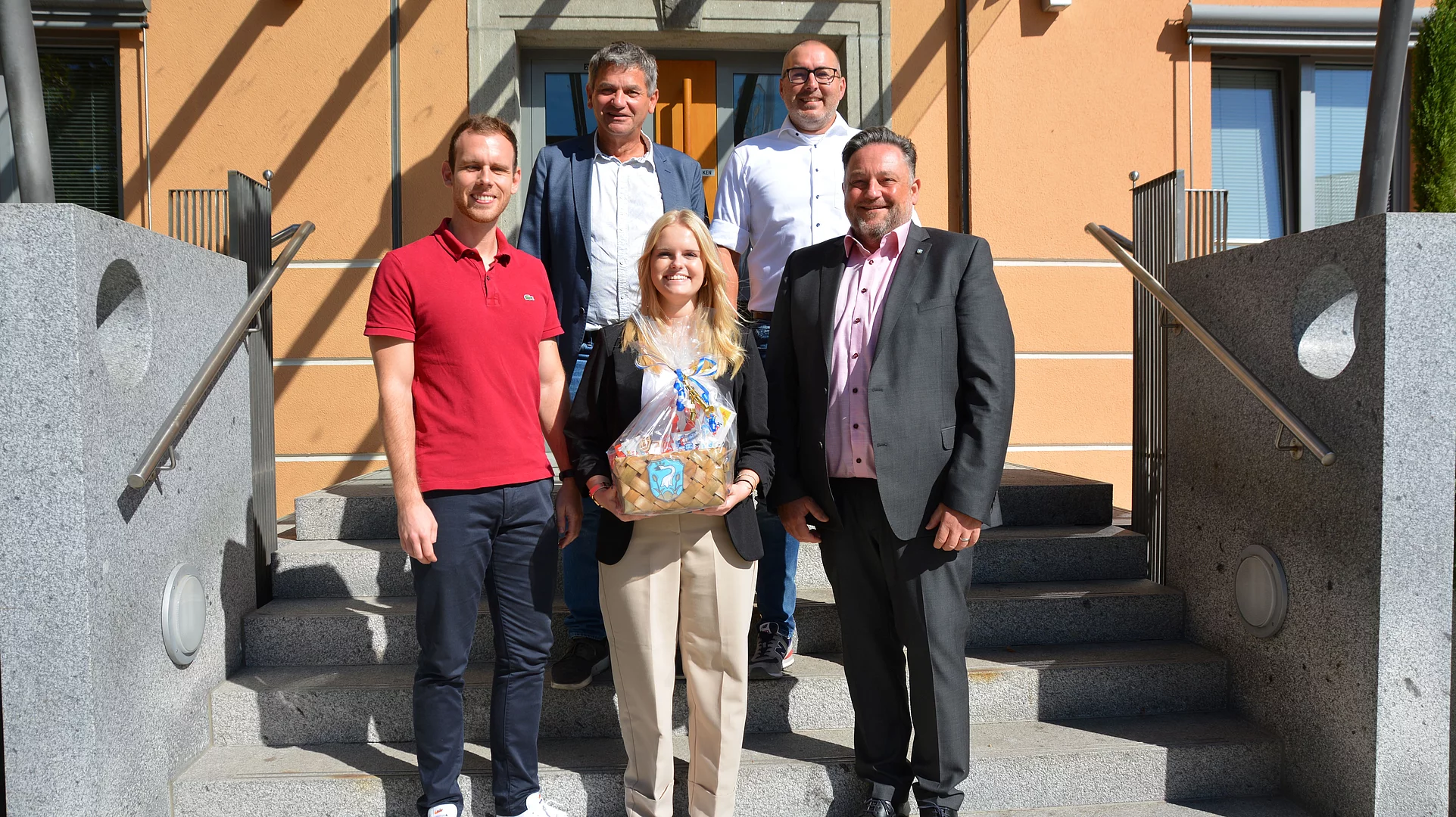 Als neues Mitglied im Rathaus-Team wurde Anna-Maria Schmid auch offiziell von Bürgermeister Thomas Beer im Namen der ganzen Belegschaft in der Stadtverwaltung willkommen geheißen. Er überreichte einen Süßigkeiten-Korb als Begrüßungsgeschenk. Neben dem Stadtoberhaupt begrüßten auch Geschäftsleiter Franz Härtl, Ausbildungsleiter Thomas Fyrguth und Personalratsvorsitzender Thomas Grundstein die Auszubildende und wünschten ihr viel Erfolg und Freude im Arbeitsleben.