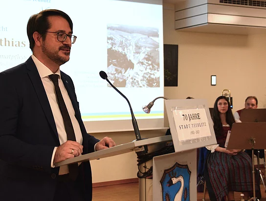 Die Blaskapelle Teublitz sorgte für ein stimmungsvolles musikalisches Rahmenprogramm, das die festliche Atmosphäre unterstrich. Grußworte wurden von Bürgermeister Thomas Gesche aus der Partner- und Nachbarstadt Burglengenfeld sowie von stellvertretendem Landrat Jakob Scharf gesprochen.