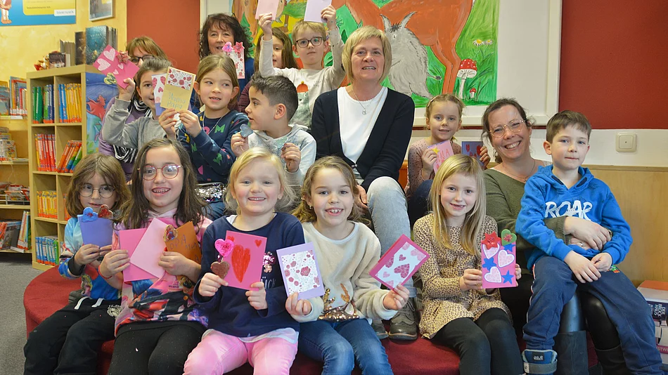 In der Stadtbücherei gab es pünktlich zum Valentinstag für Kinder die Möglichkeit, Geschenke zum „Tag der Liebenden“ zu basteln. Rund 15 Kinder hatten sich für eine lebhafte und kreative Stunde zusammengefunden.