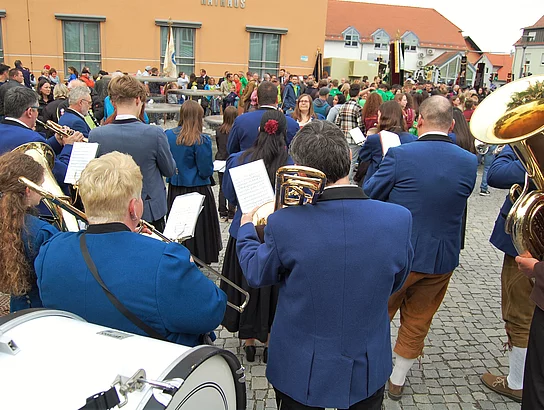 Schon zum Standkonzert durch die Blaskapelle Teublitz unter der musikalischen Leitung von Lena Hofmann hatten sich über 40 Teublitzer Vereine mit rund 800 Mitgliedern sowie viele Bürger*innen am Rathausplatz eingefunden. Bei der traditionellen Bierverkostung durch die erstmals beim Teublitzer Volksfest mitwirkende Familienbrauerei Jacob aus Bodenwöhr konnten sich die Gäste von der Süffigkeit des DLG-prämierten „Jacob Export“ und dem „wahrscheinlich besten Weißbier der Welt“ überzeugen.