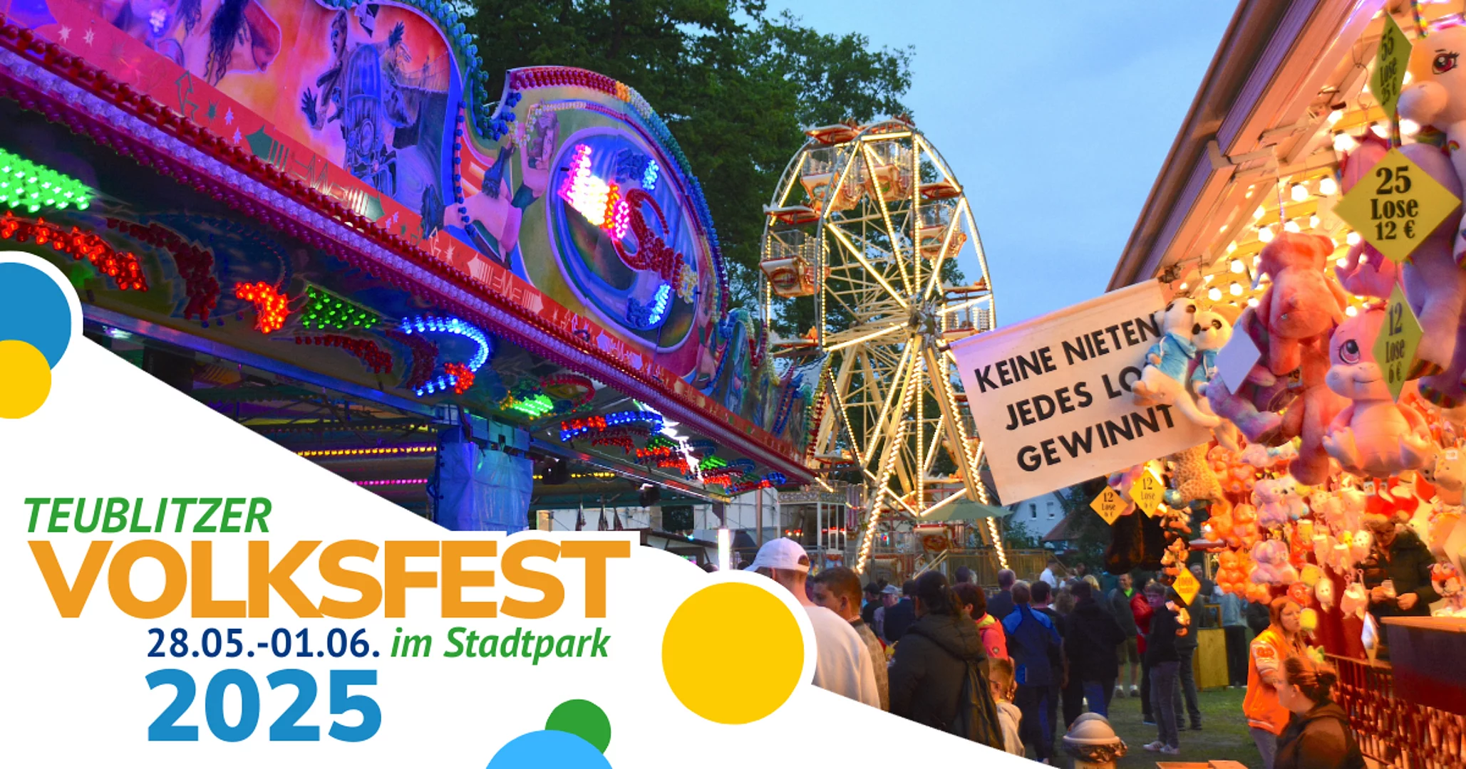 Das Teublitzer Volksfest vom 28. Mai bis zum 1. Juni 2025 verspricht eine unvergessliche Zeit voller Freude, Musik und guter Unterhaltung. Feiern Sie mit und erleben Sie, warum das Volksfest in Teublitz seit Jahrzehnten zum Kulturprogramm gehört.