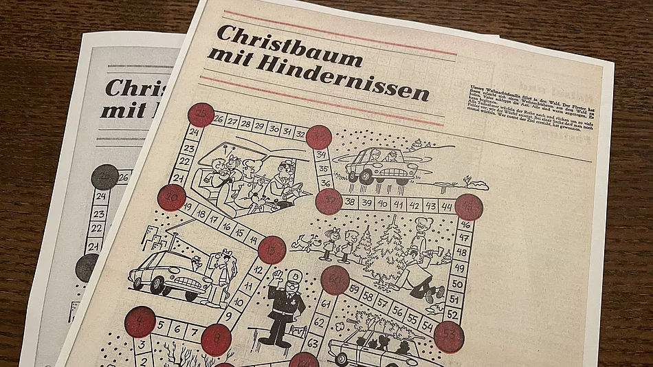 Für Kinder vergehen am Heiligen Abend die Stunden zwischen Mittag und der Bescherung viel zu langsam. Sie werden quengelig und können es kaum noch erwarten, dass das Christkind die Geschenke vorbeibringt. Dieses familiäre Problem bestand bereits vor über 50 Jahren. Um hier Abhilfe zu schaffen, veröffentlichte die damalige Burglengenfelder Zeitung (BZ) in der Weihnachtsausgabe 1970 ein Würfelspiel, um die Wartezeit zu verkürzen.