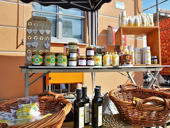 Damit sich der Wochenmarkt am Teublitzer Marktplatz als Einkaufsadresse regionaler Produkte etablieren kann, hat sich eine starke Gruppe an Beschickern zusammengefunden. Auf dem Wochenmarkt in Teublitz findet man Gemüse und Jungpflanzen von „Solawi Ferni“ aus Regenstauf, Fleisch- und Wurstwaren vom Mayerhof aus Schirndorf, Feinkost wie Antipasti, Oliven und Co. von der Familie Özbilban aus Rettenbach und frischen Fisch vom Maxhütter Fischladen. Kräuter und Gewürze gibt’s von der Teublitzer „Kräuterhexe“ Steffi Franek, Süße Leckereien von „Der Süßen Fischer“ aus Teublitz, Fassgurken, Senf und Eier von den Vettermanns aus Burglengenfeld. Honig und Natur-Artikel gibt’s von „Das Leben genießen“ aus Burglengenfeld, Leckere Brathendl vom Katzdorfer Karlheinz Meckl und Roß- und Bratwürste vom Imbissbetrieb Vetter aus Bodenwöhr.