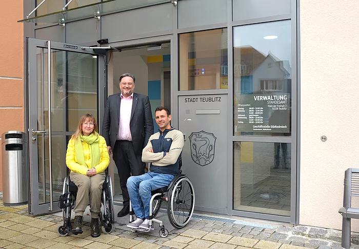Dank der Initiative von Bianca Härtl, Beauftrage für die Belange von Schwerbehinderten im Städtedreieck, gibt es ab sofort barrierefreie Zugänge in den öffentlichen Gebäuden der Stadt Teublitz. Dazu gehört das Rathaus, die Dreifachsporthalle und das Mehrgenerationenhaus (MGH).