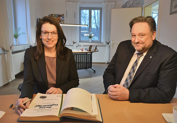 Die im September 2021 in den 20. Deutschen Bundestag gewählte CSU-Politikerin Martina Englhardt-Kopf stattete Erstem Bürgermeister Thomas Beer einen Besuch im Rathaus ab. Beide tauschten sich über politische Zukunftsperspektiven aus.